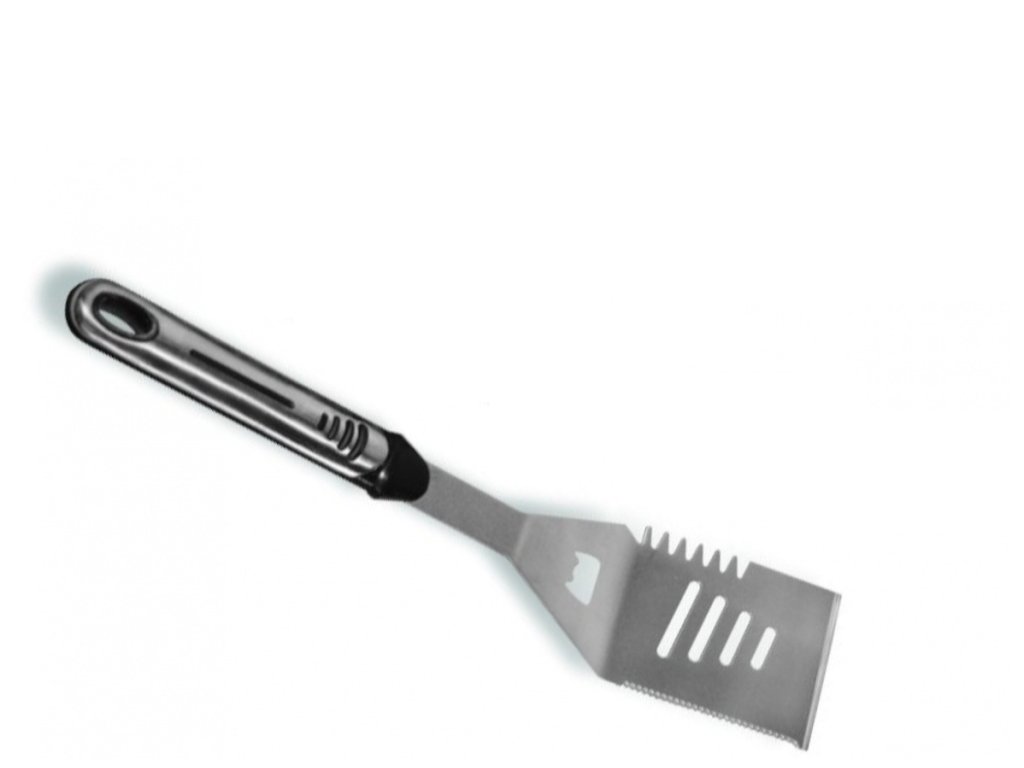 Univerzálna obracačka na grilovanie. Široká pracovná plocha z nerezovej ocele doplnená tvrdšou prednou časťou na rezanie a so zubami na boku. Pohodlnú a bezpečnú prácu s pokrmami na grile vám zaistí rukoväť s tepelne odolným gripom aj integrovaný otvárač fliaš.