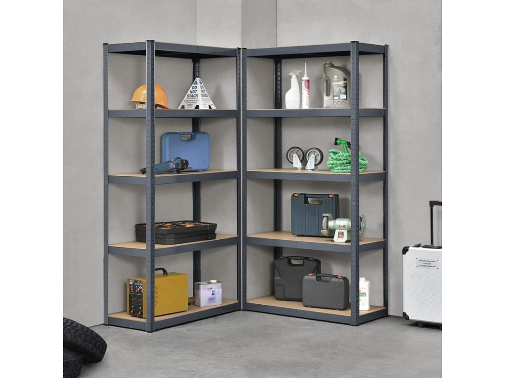 Univerzální kovový regál s MDF policemi, nosnost police 175 kg.