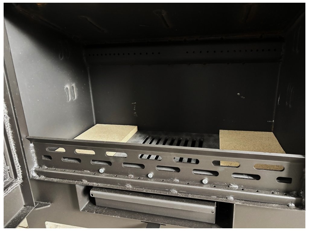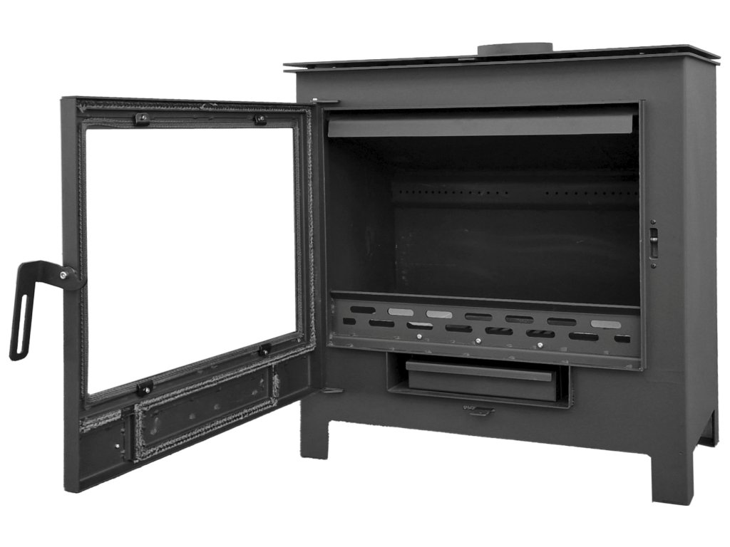 Telo kachlí z oceľového plechu je ošetrené čiernou žiaruvzdornou farbou.