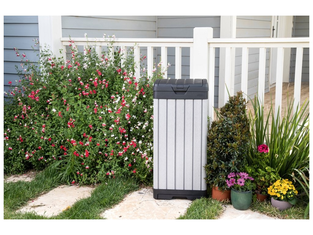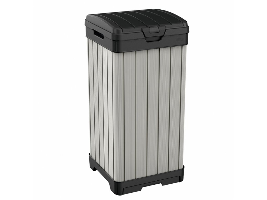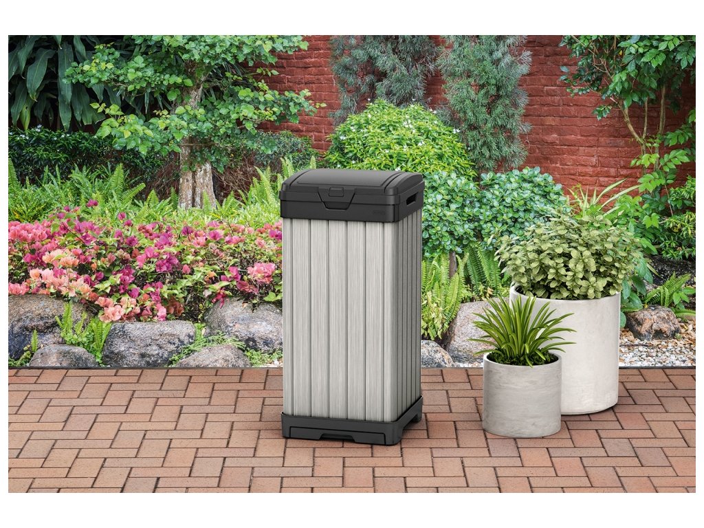 Keter Rockford s objemom 125 l je veľmi praktický a designový vonkajší odpadkový kôš. Rockford je vyrobený z pevného plastu Duotech, odolného voči vplyvom nepriaznivého počasia a UV žiareniu.Vzhľad koša na svojom povrchu imituje drevo, vďaka čomu nebude narušovať atmosféru ako moderného, tak klasicky zariadeného priestoru. Inovatívne dvojité veko umožňuje tesné uzatvorenie koša a inštaláciu sáčku na odpadky. Špeciálne navrhnutý výsuvný podnos uľahčuje čistenie.