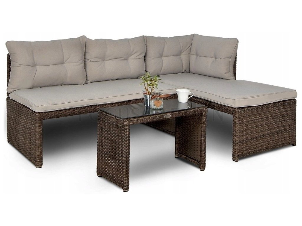 Rohová sedacia súprava z technoratanu CANVAS Brown
