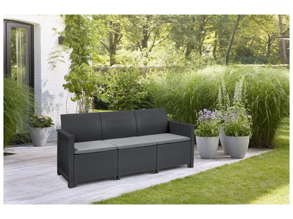 Trojmiestna záhradná pohovka Elodie - grafit/sivá
