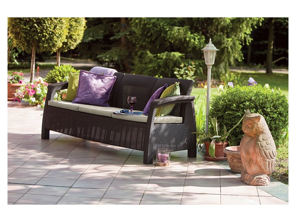 pohovka je vyrobená z najkvalitnejšieho polypropylénu v tmavo hnedej farbe so štruktúrou prírodného ratanu