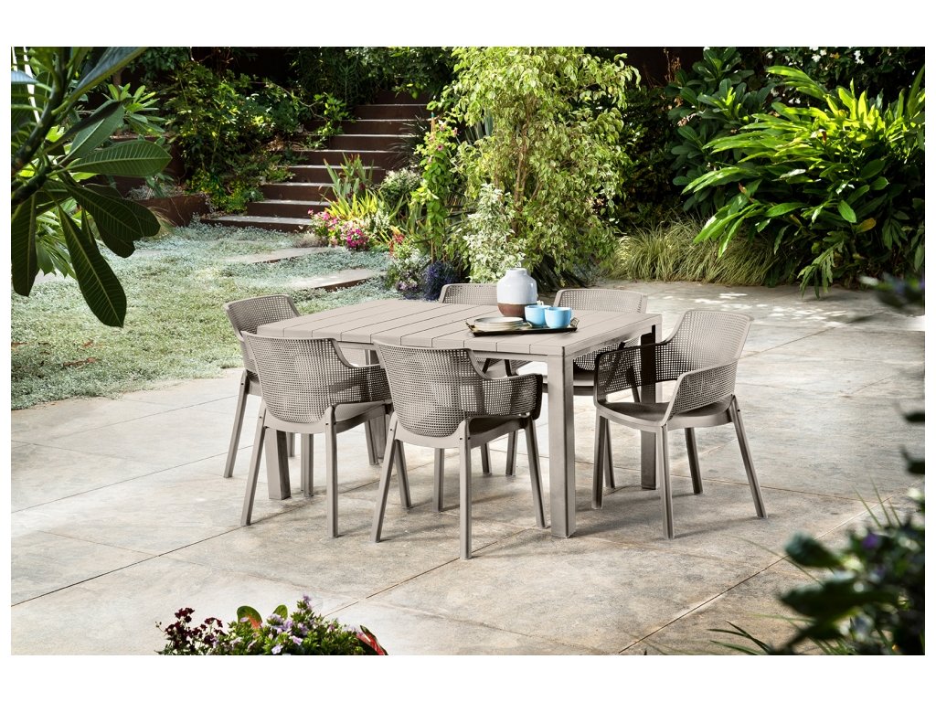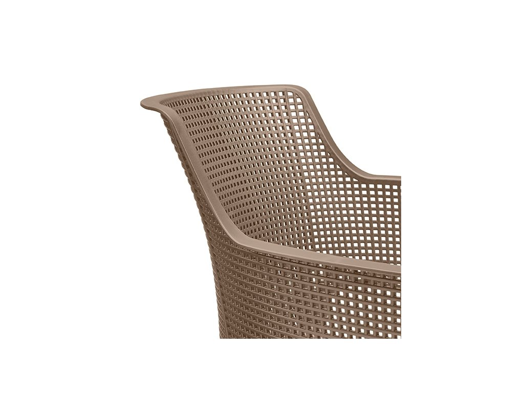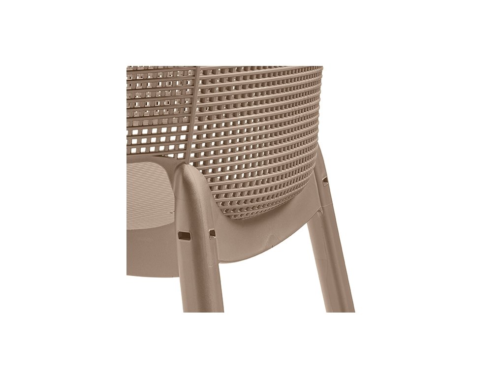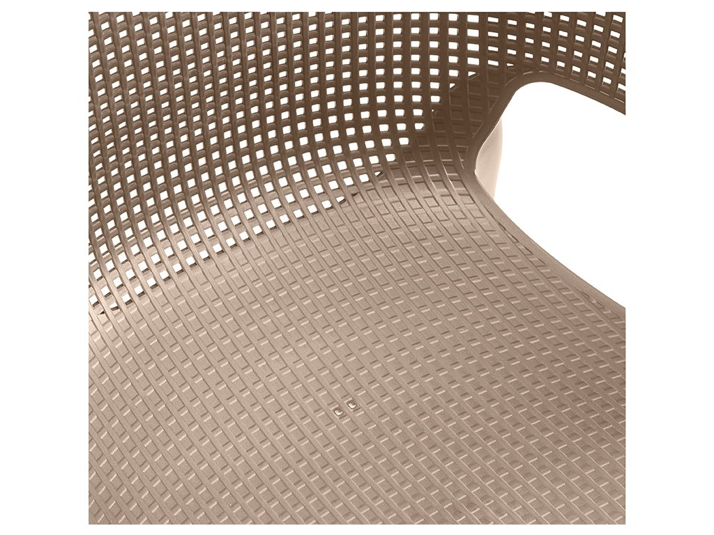 Tvarované operadlo a sedadlo, ako aj mäkké, zaoblené línie podrúčok sú nepochybne silnými stránkami tohto výrobku. Moderná sieťová konštrukcia, ktorá sa ľahko čistí a ukladá z jednej stoličky na druhú. Ideálne pre vašu záhradu alebo terasu.