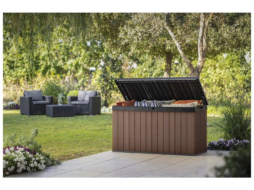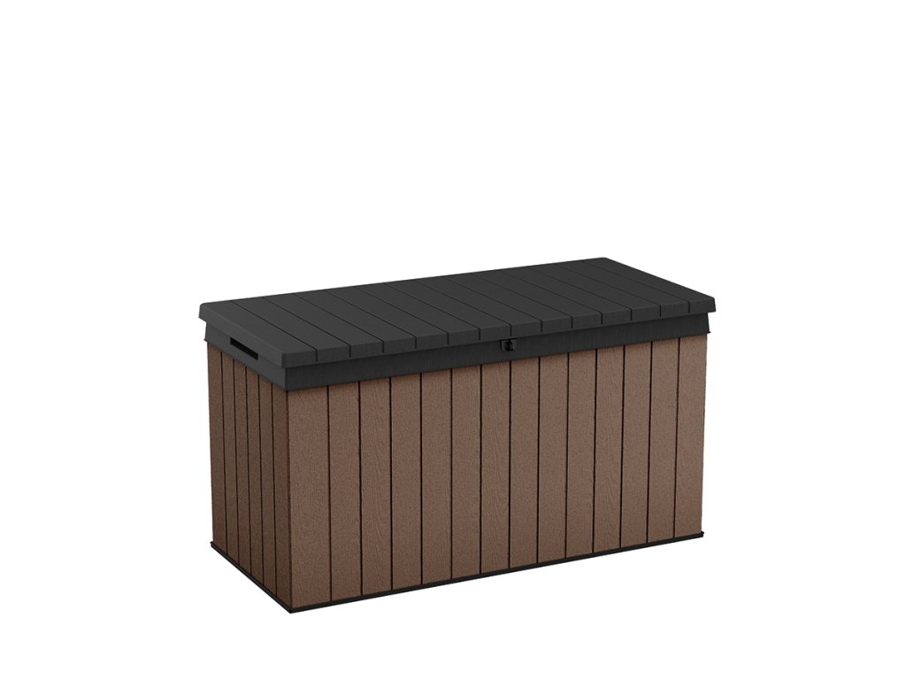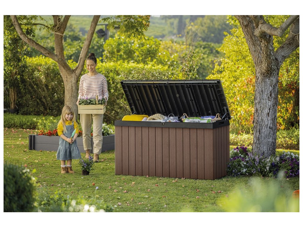 Záhradný box Darwin kombinuje veľmi odolnú konštrukciu s elegantným dizajnom. Je vyrobený z inovatívneho materiálu EVOTECH™, ktorý je odolný voči poveternostným vplyvom a UV žiareniu. Rustikálna štruktúra pripomínajúca drevo a štýlová dvojfarebná kombinácia sú ďalšími estetickými prednosťami výrobku. Vďaka veľkej kapacite sa do boxu Darwin zmestia vankúše a ďalšie príslušenstvo, ktoré vám pomôže udržať poriadok na terase alebo v záhrade. Mechanizmus, vďaka ktorému sa ľahko otvára, je nespornou výhodou tohto výrobku. Uzamykateľné veko vám umožní mať box v prípade potreby pevne uzavretý. Vďaka pevnej konštrukcii možno box používať aj ako sedenie pre dve osoby. Vhodný ako doplnok k domčekom Darwin.