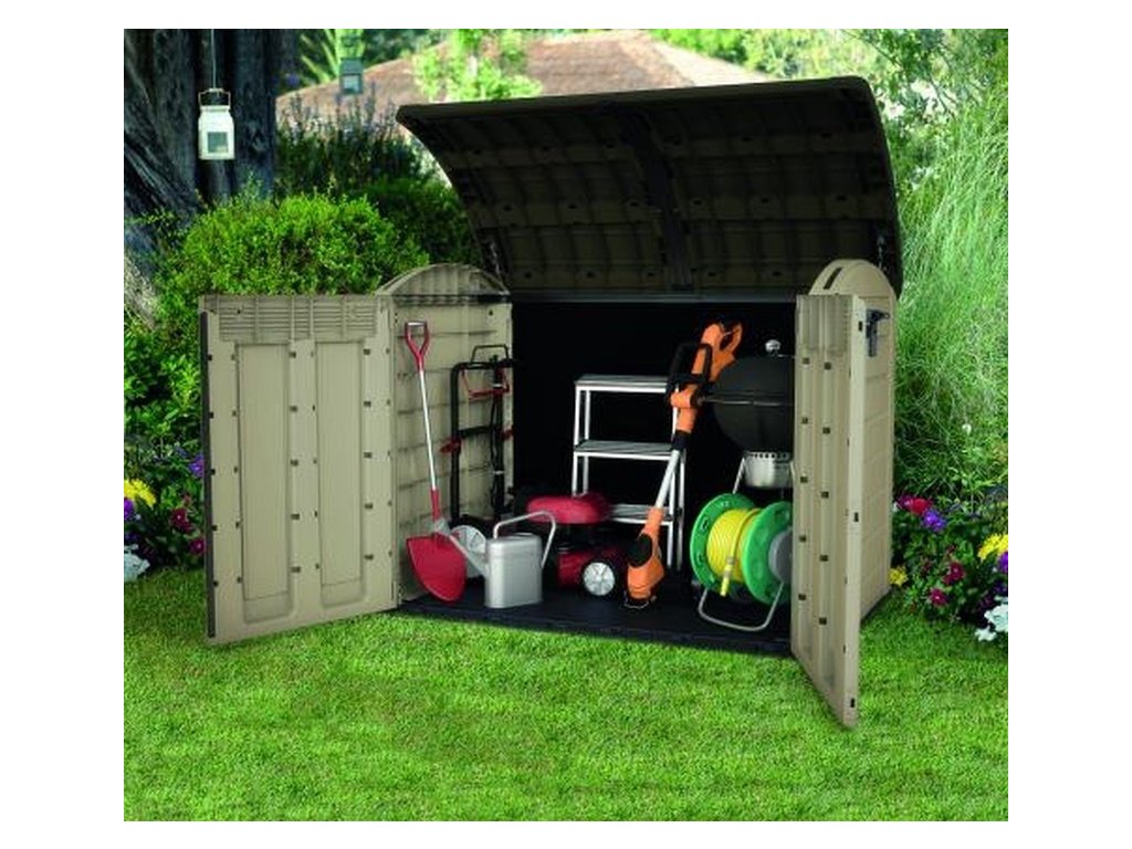 Uzamykateľný prístrešok Keter Store-It-Out Ultra ponúka neuveriteľný objem 2 000 litrov, čo z neho robí ideálny priestor na uskladnenie košov, bicyklov alebo záhradného náradia. Horné veko je vybavené automatickým otváracím mechanizmom využívajúcim hydraulické valce a kovové vzpery udržiavajú veko otvorené na jednoduché plnenie košov. Vďaka šikmému prahu je prístrešok pripravený aj na nakladanie kontajnerov s kolieskami, takže s ich uskladnením nebudete mať najmenší problém. Možno ho však použiť aj ako úložný priestor na dielenské náradie, kde sa dajú police nainštalovať vo vodorovnej polohe pomocou priložených držiakov a úchytov.