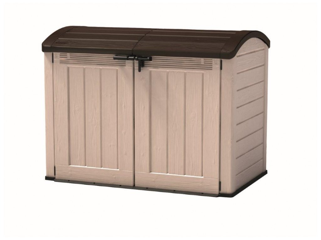 - Béžovo-hnedý kontajner Keter Store-It-Out Ultra ponúka kapacitu 2 000 litrov na uskladnenie nádob alebo záhradného náradia