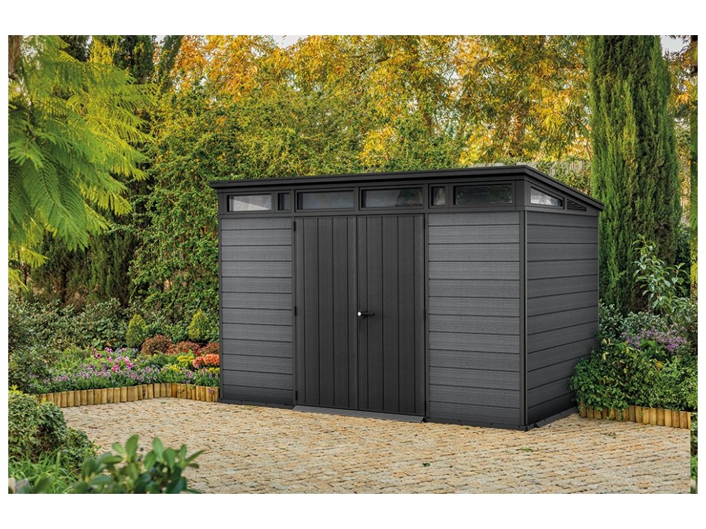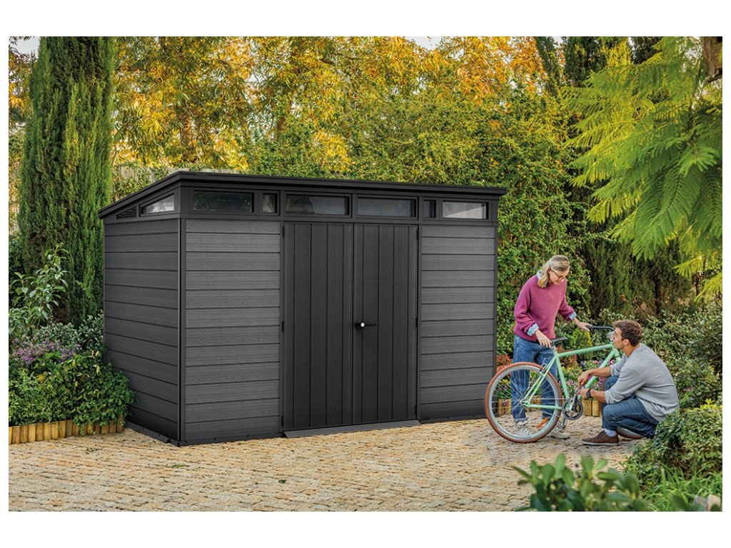 Výnimočne priestranný záhradný domček Cortina 2.0 11x7 bol navrhnutý pre ľudí, ktorí žijú život naplno. Pojme všetko od náradia pre domácich majstrov, až po veľké športové a dokonca aj automobilové vybavenie. Záhradný domček je vyrobený z materiálu EVOTECH™, odolného voči nepriaznivým poveternostným podmienkam a nevyžaduje žiadnu údržbu. Podlahový panel umožňuje zloženie ťažšieho vybavenia, ako sú štvorkolky, kosačky na trávu alebo záhradný nábytok. Navyše zabraňuje zablateniu alebo zatopeniu interiéru. Široké dvojkrídlové dvere uľahčujú vyťahovanie vášho každodenného vybavenia, as množstvom prirodzeného svetla a priestoru môže tento prístrešok tiež slúžiť ako priestor pre domácich majstrov.