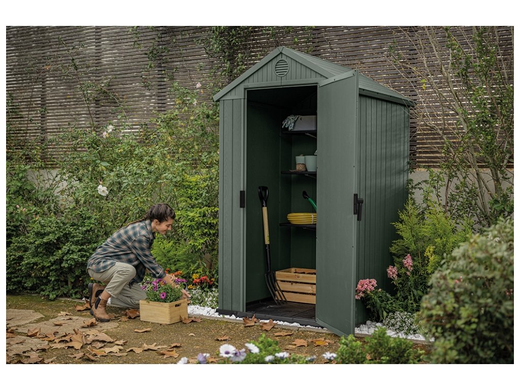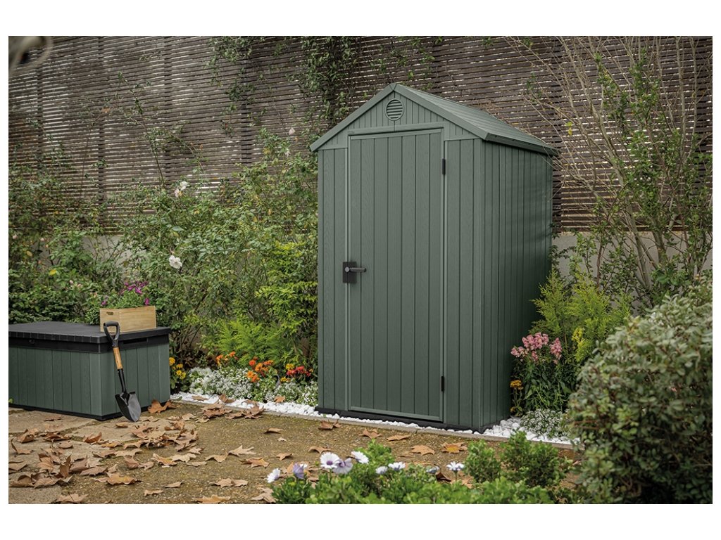 Tento záhradný domček je nenáročný na údržbu, vôbec ho netreba impregnovať a jeho čistenie a montáž sú veľmi jednoduché. Keter Darwin má tiež odolný podlahový panel a pevnú sedlovú strechu, zaťaženie je rovnomerne rozložené a všetky upevnenia v celej konštrukcii sú mimoriadne pevné a stabilné. Okrem toho je Keter Darwin 4x4 vybavený pevnými dverami s účinným zatváraním. Výrobca zabezpečil aj vhodný ventilačný systém s riadenou cirkuláciou vzduchu. Môžete si byť istí, že predmety uložené vo vnútri budú dobre chránené a záhradný domček Keter Darwin 4x4 je vhodný na uskladnenie nielen záhradného náradia, ale aj športového náčinia, dielenského vybavenia atď.