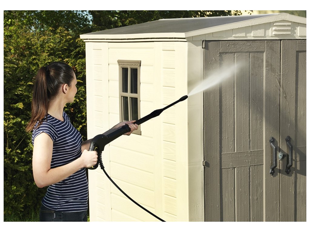 Ďalšou prednosťou záhradného domčeka je veľmi jednoduchá montáž a vysoká odolnosť. Materiál domčeku je odolný proti vode, snehu aj UV žiareniu. K bezpečnému uloženiu vašich vecí slúži možnosť uzamknutia aj ventilačná mriežka, ktorá zabraňuje vlhkosti.