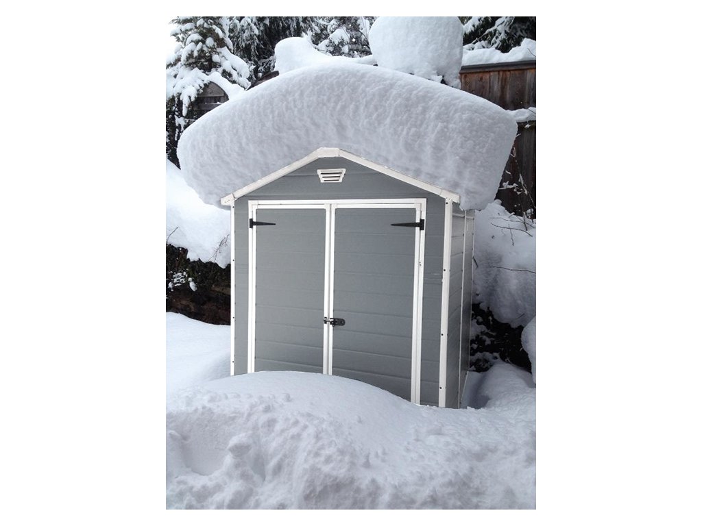 Ďalšou prednosťou záhradného domčeka je veľmi jednoduchá montáž a vysoká odolnosť. Materiál domčeka je odolný proti vode, snehu aj UV žiareniu. K bezpečnému uloženiu vašich vecí slúži možnosť uzamknutia a aj ventilačná mriežka, ktorá zabraňuje vlhkosti.