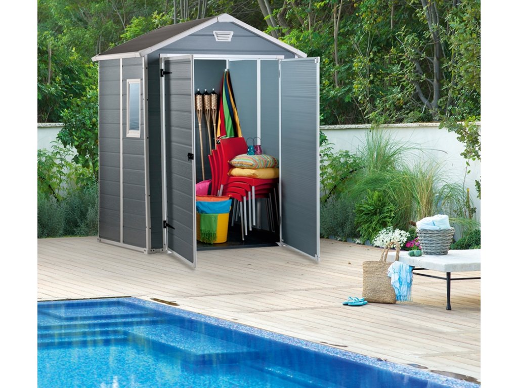 Ak riešite nutnosť uskladnenia vecí a záhradného náčinia, iste vás osloví nemecká firma Keter. Firma Keter, ktorá si zakladá na kvalite materiálov i na modernom dizajne, má vo svojej ponuke záhradné domčeky, ktoré iste vyplnia vaše požiadavky. Domček Manor 6x5 disponuje rozmermi 128 x 152 x 226 cm, je vysoko odolný a bezúdržbový.