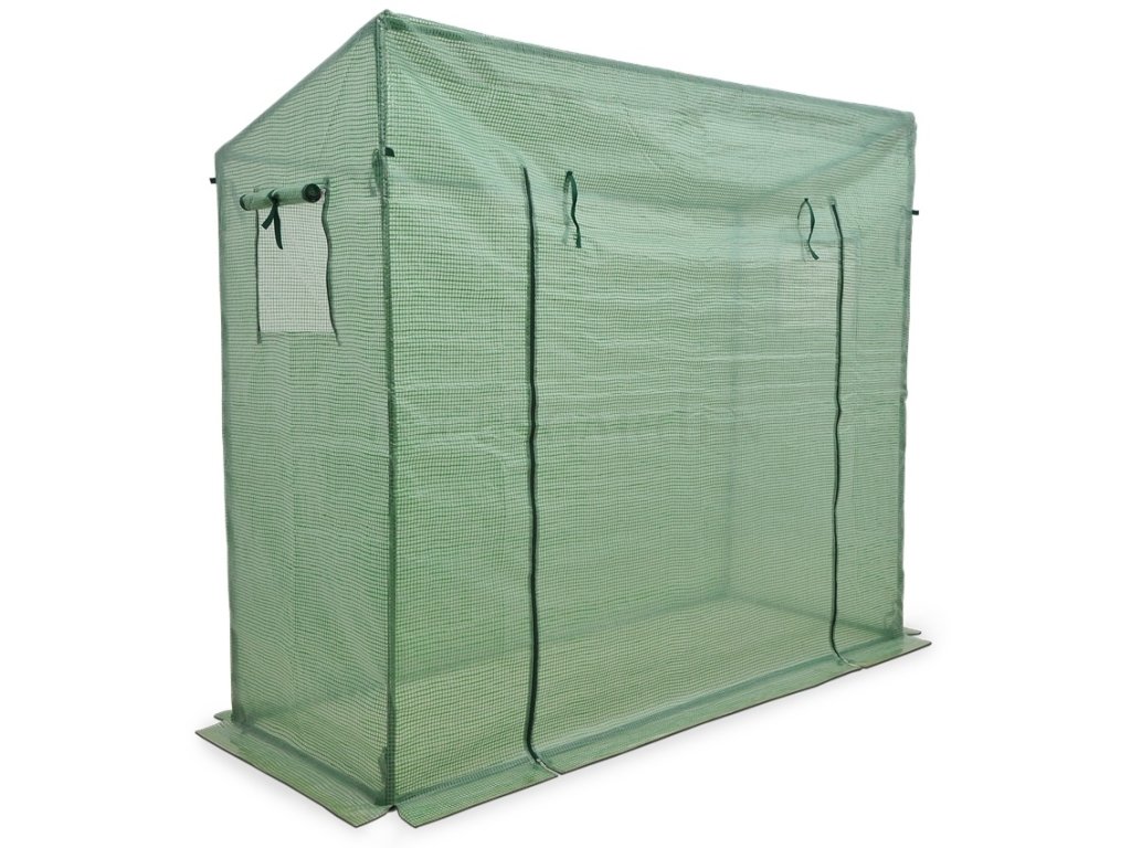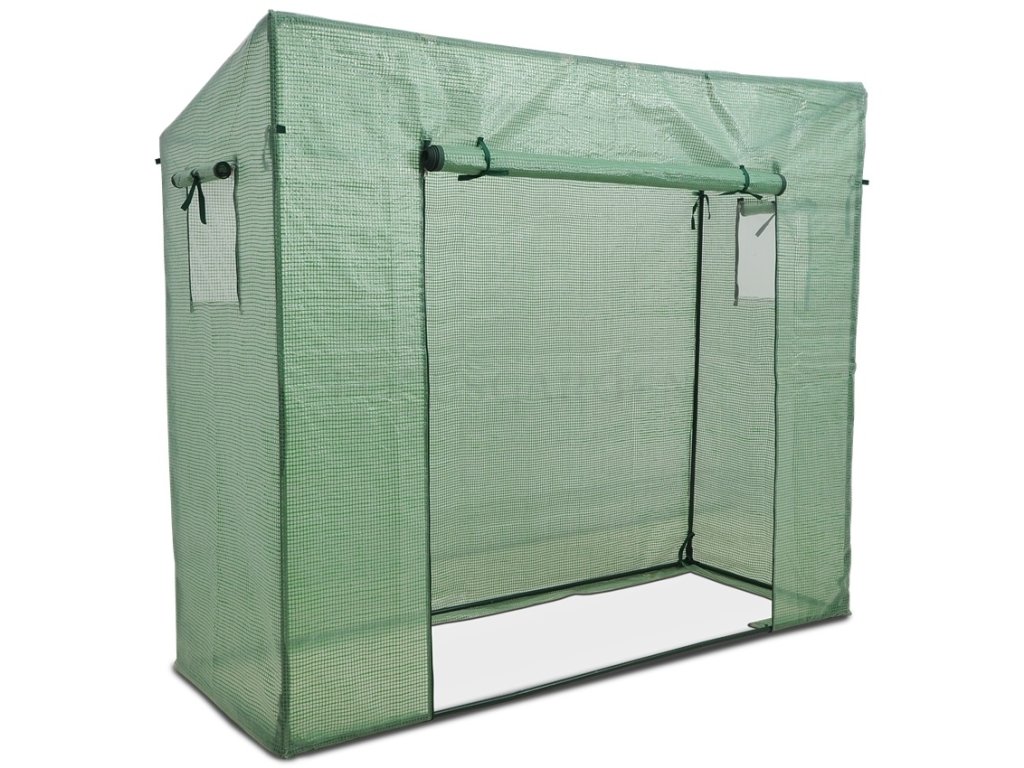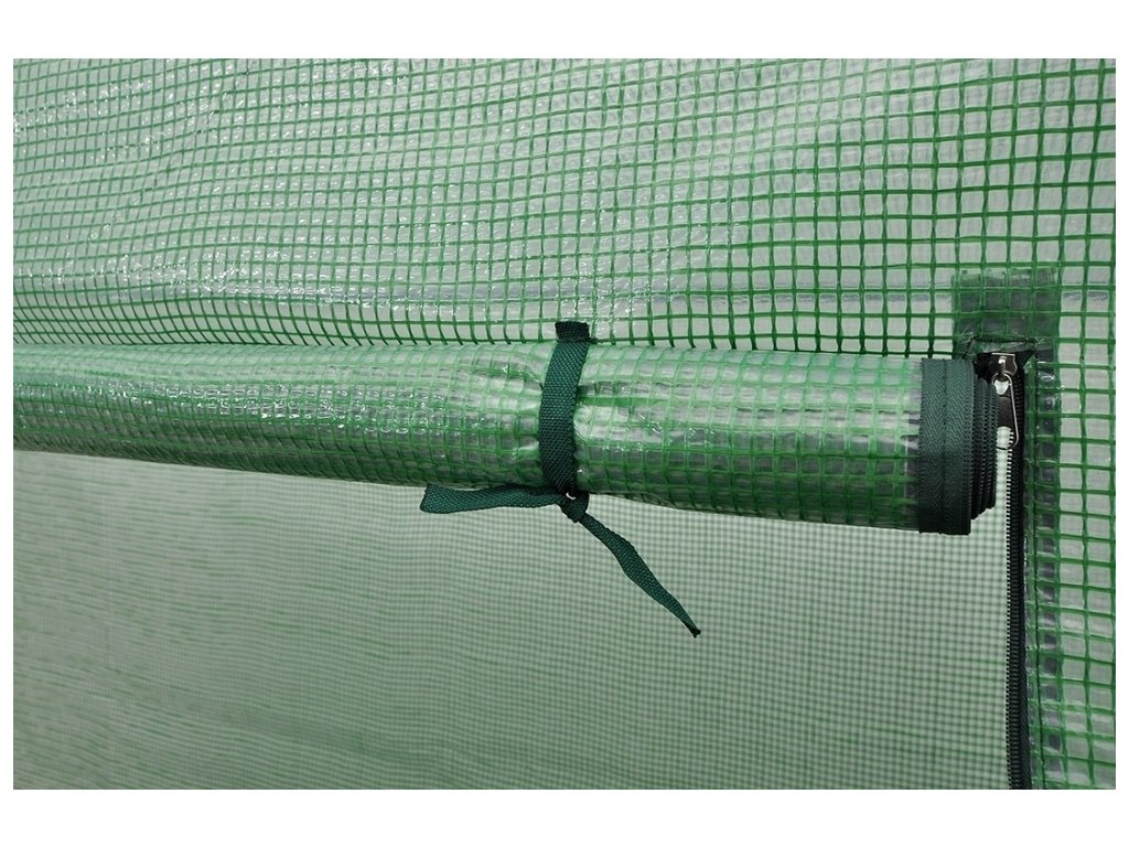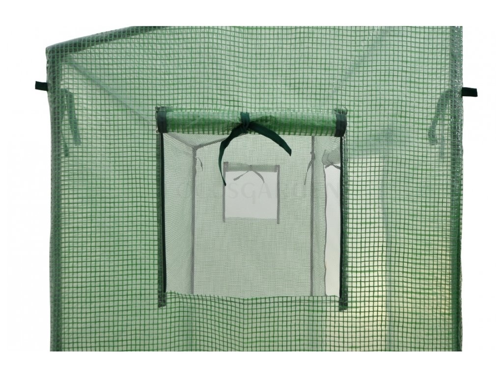 vybavený širokým vchodom - dverami so zipsom a moskytiérou, aby sa do skleníka nedostal žiadny hmyz škodlivý pre rastliny