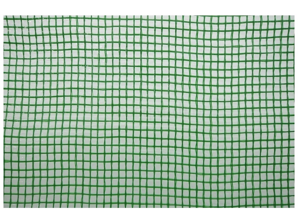 transparentná, vrstvená PE fólia 140g/m2 so zapustenou zelenou PP sieťou, odolná voči poveternostným podmienkam a UV žiareniu