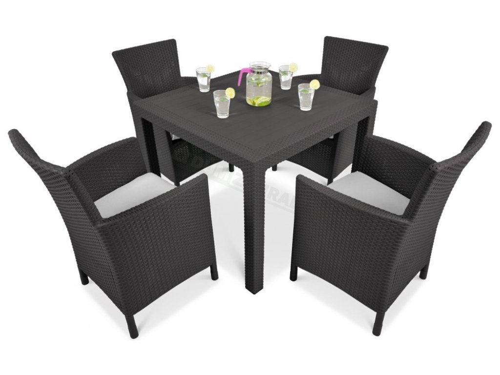 - komplet obsahuje 4 vysoké pohodlné kreslá a štvercový stôl